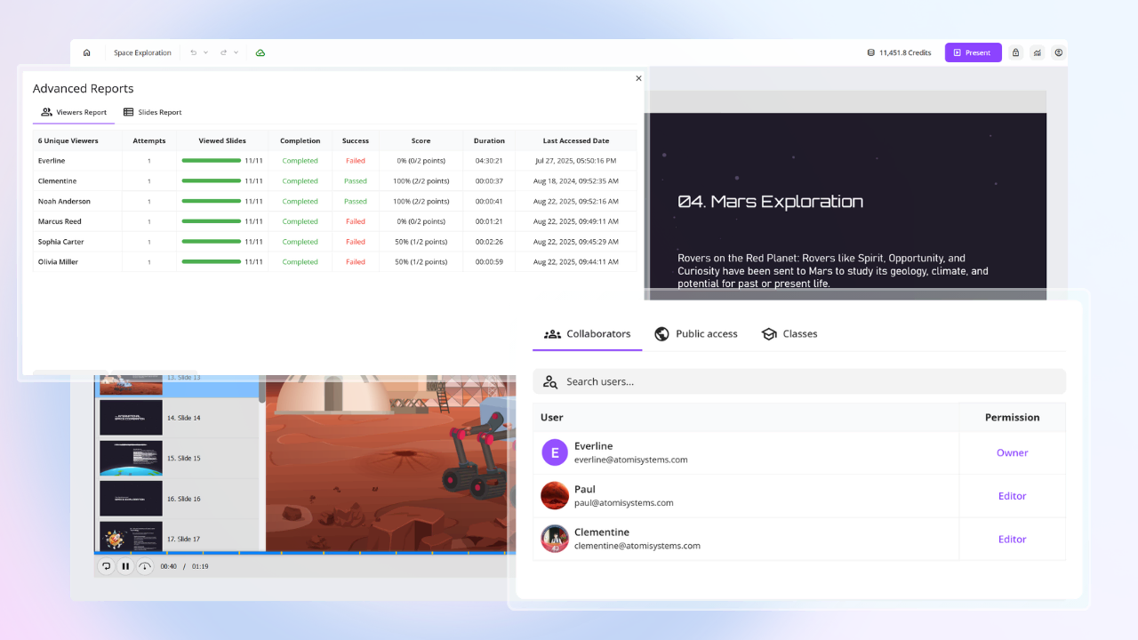 - A professional eLearning toolkit with advanced quiz logic and robust SCORM/xAPI support for flawless LMS integration.