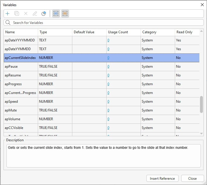 Step 3: Click Insert Reference to close the dialog and apply the variable to the slide.