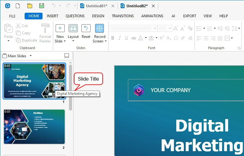 Slide names and numbers help you identify and manage slides more effectively. Let’s learn how to add slide titles and numbers and customize them with ActivePresenter eLearning tool