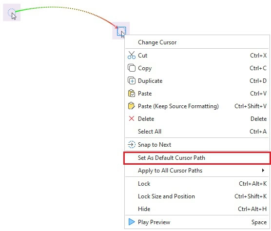 Step 3: Go to its Properties pane > Size & Properties > Cursor Path. Then, modify the mouse cursor effects the way you want.